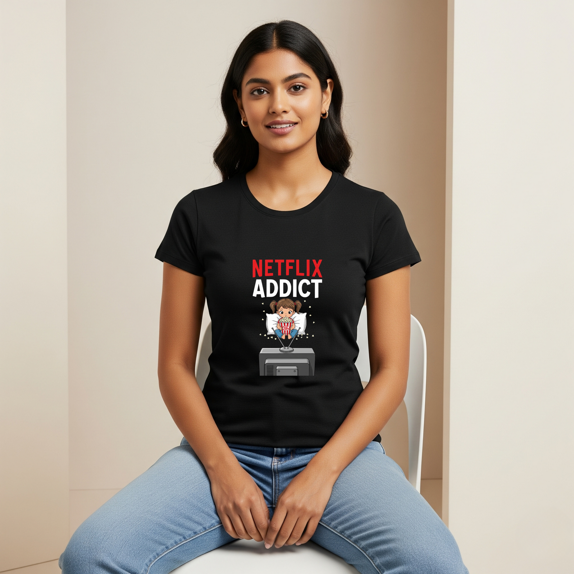 Netflix Addict & Remote Holder T-shirts — Funny Matching Tees for Binge-Watching Couples